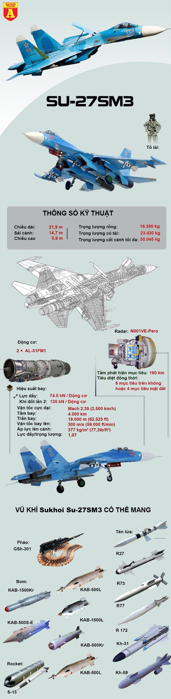 Su-27SM3 là phiên bản nâng cấp mới nhất của tiêm kích Su-27, việc được trang bị hệ thống điện tử mới và gia cố khung thân khiến chiếc tiêm kích này có sức chiến đấu tiệm cận với cả siêu tiêm kích Su-35. Su-27SM3 là gói nâng cấp mạnh nhất đối với những chiến đấu cơ Su-27, giúp Su-27 "cải lão hoàn đồng", có khả năng chiến đấu tiệm cận với những tiêm kích thế hệ thứ 4 mạnh nhất của phương Tây.