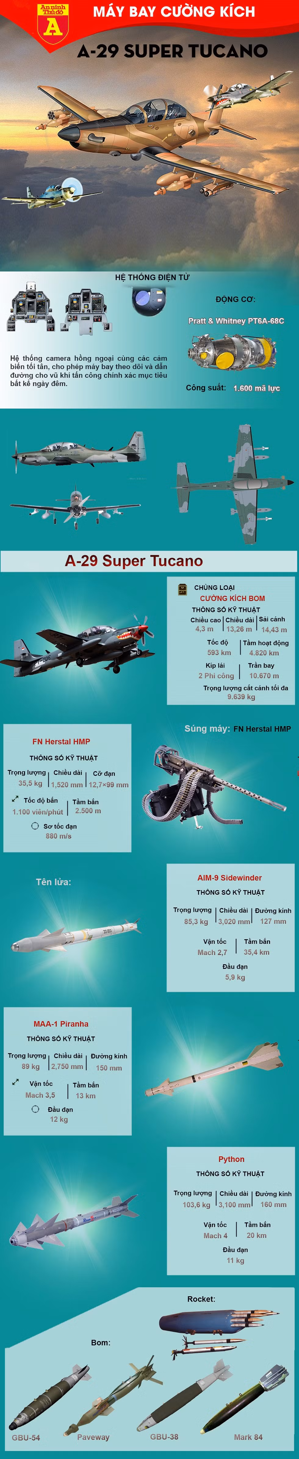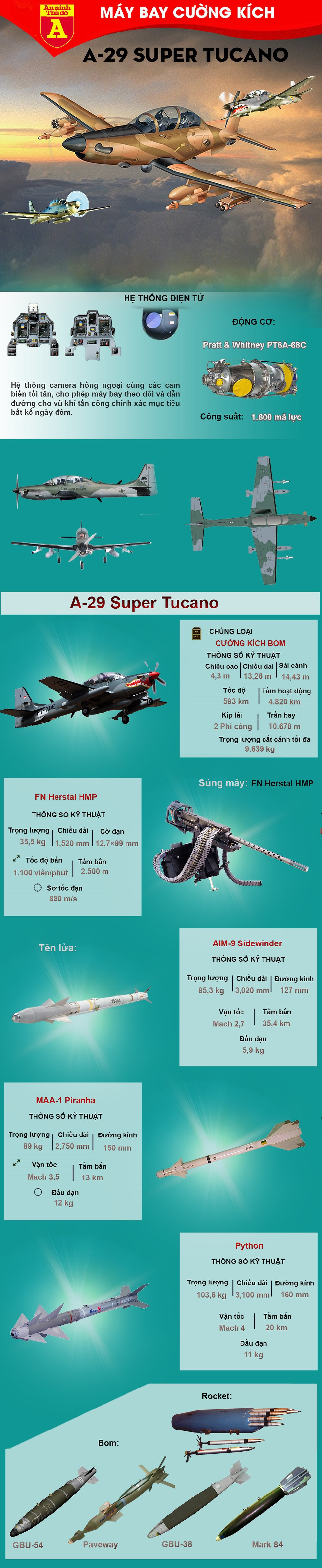A-29 Super Tucano được thiết kế cho tấn công hạng nhẹ, chống chiến tranh du kích và huấn luyện phi công. Mẫu máy bay này được trang bị hệ thống vũ khí và điện tử hàng không hiện đại hợp nhất.