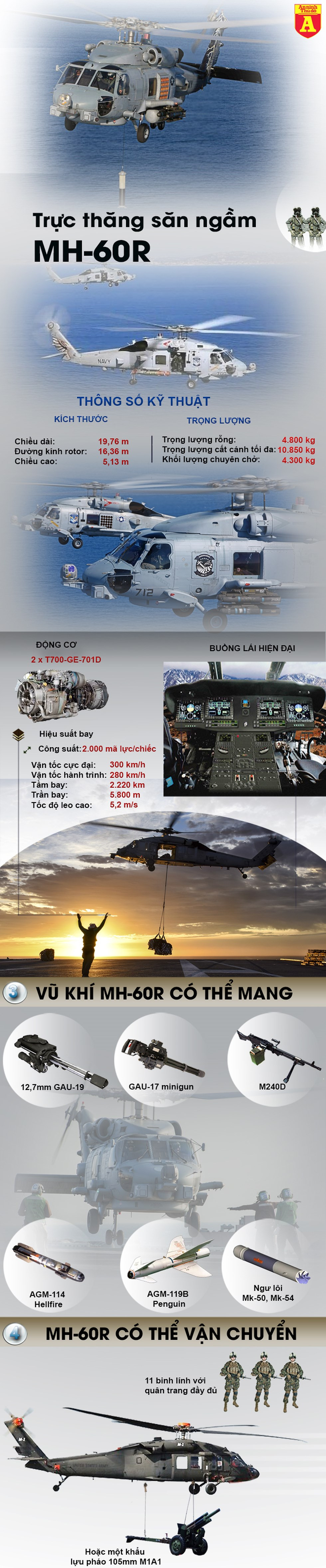 MH-60R là trực thăng săn ngầm hoạt động trong hải quân Mỹ. Máy bay này còn có biệt danh Romeo. Việc phát triển loại máy bay này bắt đầu vào năm 1993 dựa trên phiên bản SH-60B Seahawk và chính thức đi vào biên chế năm 2009. Thiết kế của MH-60R Seahawk kết hợp đặc điểm của các trực thăng săn ngầm SH-60B và SH-60F để cho ra một phiên bản tối ưu cho hải quân Mỹ. Dù được thiết kế để tiêu diệt tàu ngầm nhưng trực thăng MH-60R còn có thể mang cả tên lửa chống tăng Hellfire tiêu diệt mục tiêu trên biển, đất liền. Đây được coi là một trong số những dòng trực thăng đa nhiệm tốt nhất thế giới dành cho hải quân.