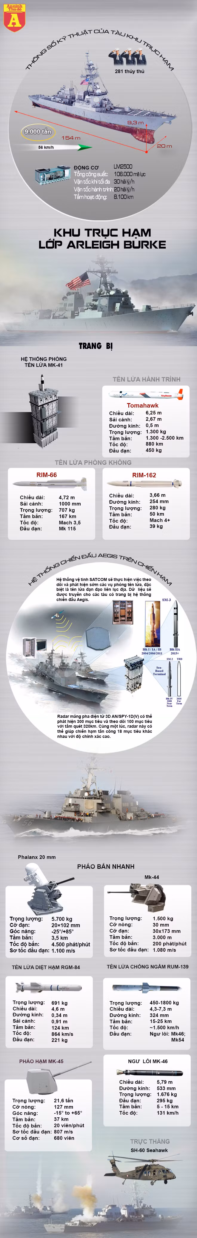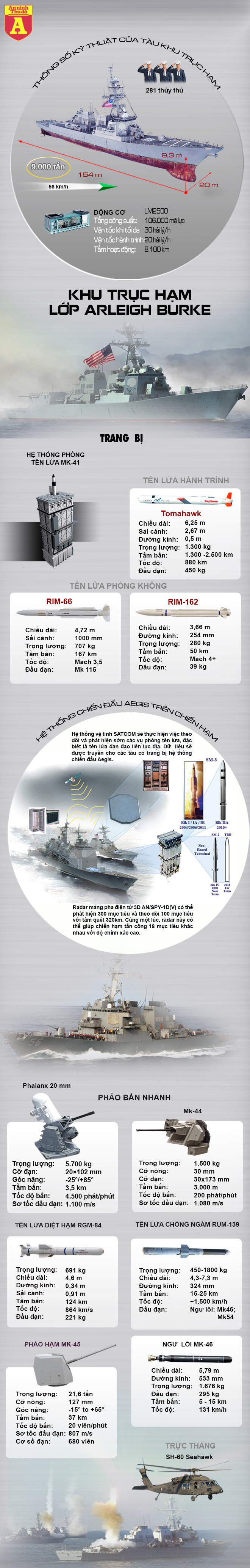 Điểm nhấn của tàu Burke là hệ thống radar Aegis, nó có thể chỉ huy nhiều loại tên lửa phòng không tấn công mục tiêu đang tiếp cận.