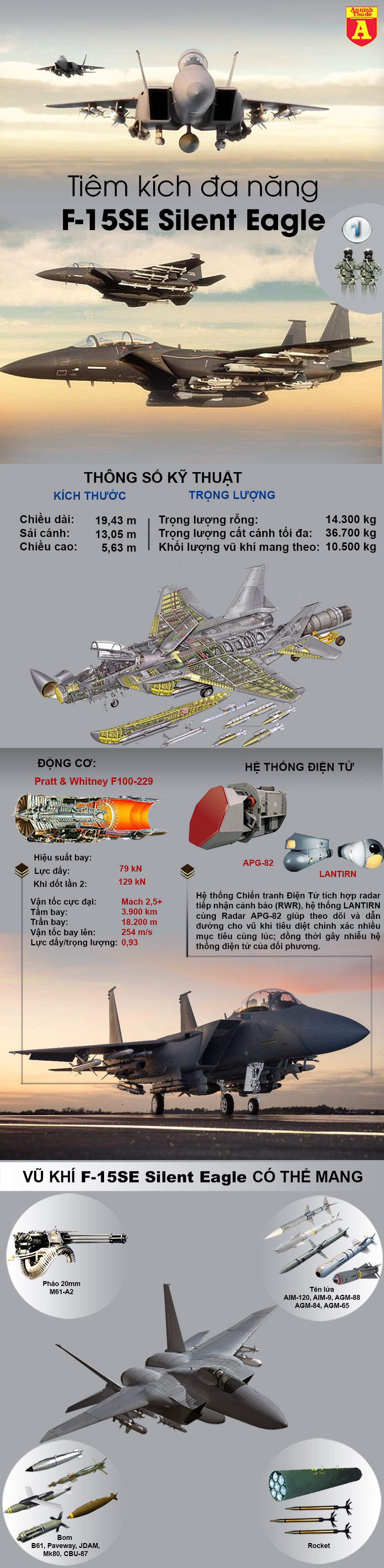 Nhờ áp dụng những công nghệ điện tử hàng không tiên tiến nhất và bổ sung tính năng tàng hình mà F-15SE Silent Eagle (Đại bàng thầm lặng) được đánh giá có năng lực tác chiến ngang ngửa với tiêm kích hạng nặng Su-35S của Nga.