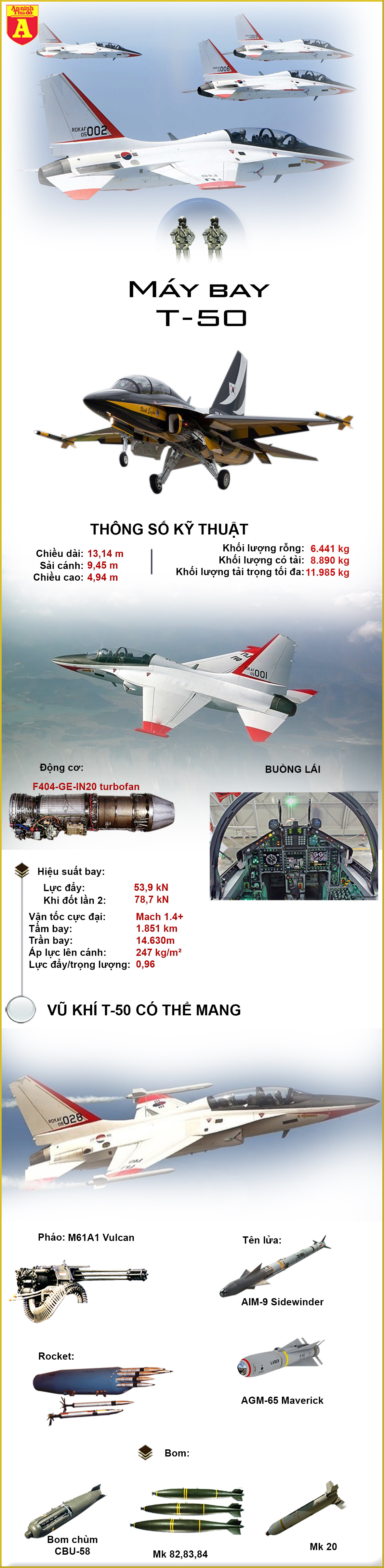 T-50 là máy bay huấn luyện hiện đại duy nhất trang bị động cơ phản lực F404-GE-402. Vì vậy, nó có đặc điểm bay rất cao, tốc độ siêu âm và linh hoạt. T-50 bay cao tối đa đạt 14.550 m, ở độ cao này giới hạn tốc độ ở 30 m/phút, vượt trội so với máy bay huấn luyện thế hệ mới cùng loại khác trên thế giới.