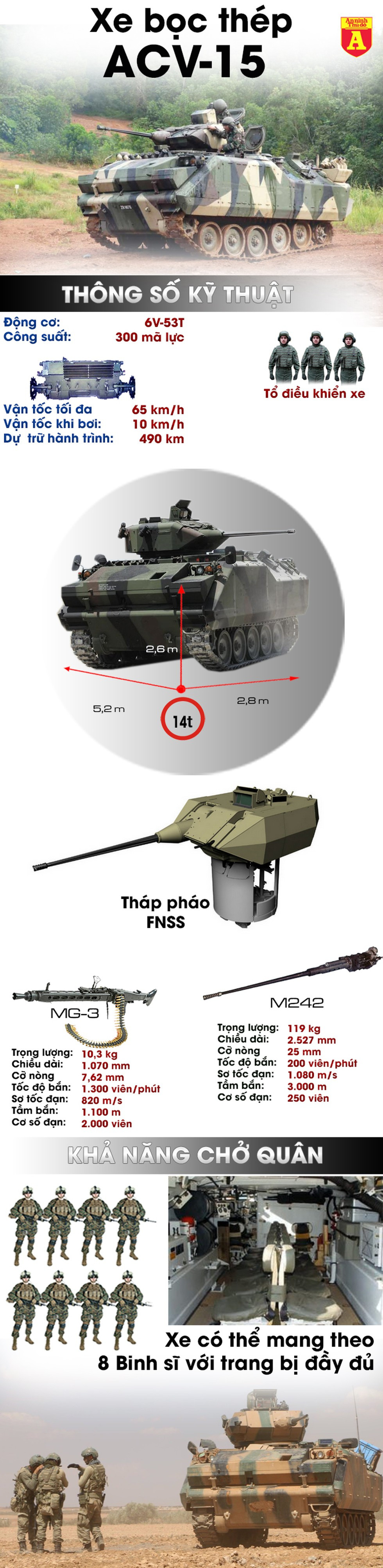 ACV-15 là dòng xe chiến đấu bộ binh do Thổ Nhĩ Kỳ sản xuất và biên chế cho quân đội từ năm 1992, được trang bị pháo 25mm hoặc súng máy 12,7mm và súng máy 7,62mm và hệ thống bảo vệ binh sĩ NBC. Đây được coi là một trong những dòng xe bọc thép tốt trên chiến trường dành binh sĩ. Tuy vậy tại chiến trường Syria, các đòn tấn công bởi tên lửa chống tăng từ phía dân quân người Kurd đã phá hủy ít nhất một chục chiếc xe chiến đấu bộ binh này.