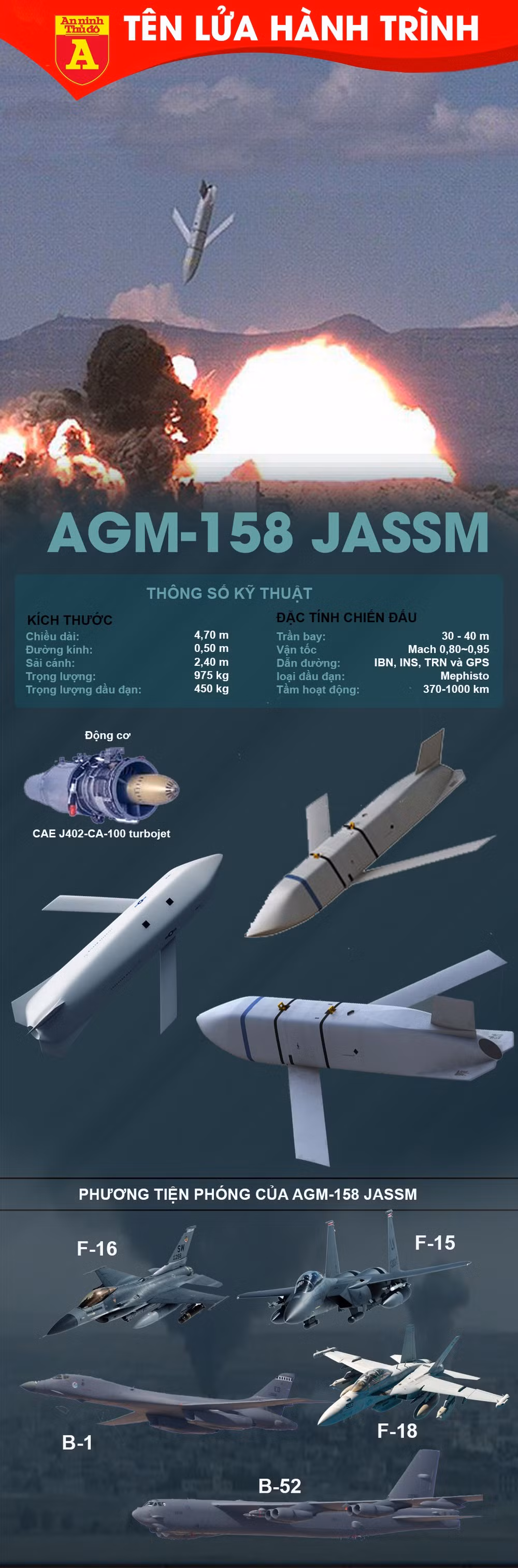 Với tầm hoạt động lớn, có khả năng tấn công vào các mục tiêu cứng, chắc, độ xuyên hạn chế. Chúng được thiết kế để sử dụng cho việc khoan xuống các mục tiêu quan trọng như sở chỉ huy, kho tàng chiến lược nằm sâu trong lòng đất và được xây dựng kiên cố, tên lửa AGM-158 JASSM được coi là một trong những 'móng vuốt' đáng sợ nhất của không quân Mỹ.