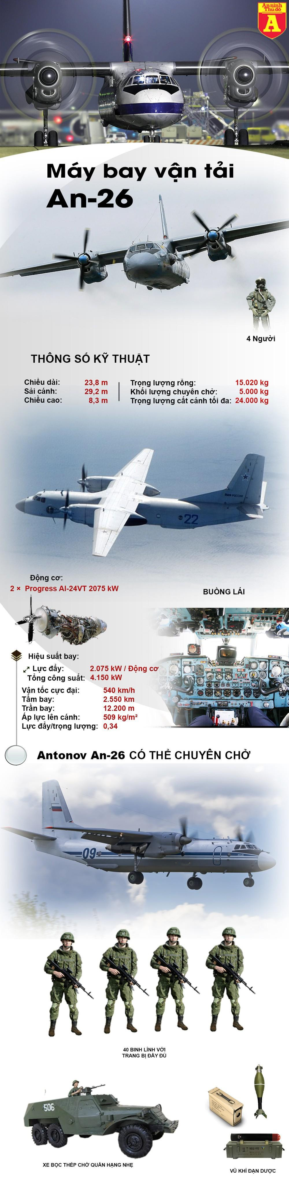 Máy bay vận tải An-26 do hãng Antonov nghiên cứu phát triển từ những năm 1960. Khoảng 1.400 chiếc được sản xuất từ 1969-1986 và xuất khẩu tới nhiều quốc gia. An-26 được đánh giá là máy bay vận tải tầm trung hoạt động ổn định hiệu quả, không đòi hỏi đường băng quá dài để cất cánh cũng như dễ bảo dưỡng. Ngoài nhiệm vụ phục vụ chủ yếu trong quân sự, một số chiếc An-26 còn được dùng làm máy bay vận tải hành khách và hàng hóa trong dân sự.