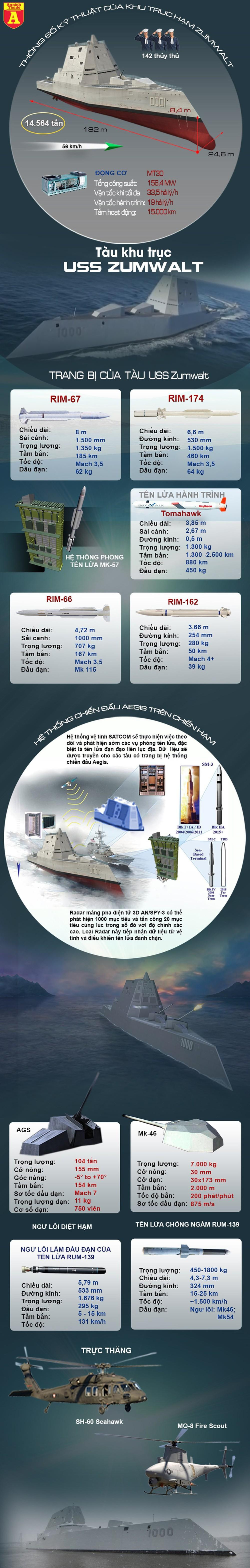 Ngay từ lúc đặt nền móng thiết kế cho tới khi đi vào chính thức hoạt động trong biên chế hải quân Mỹ, tàu khu trục lớp Zumwalt được coi là kho vũ khí phi hạt nhân đáng sợ trên biển mạnh mẽ nhất hiện nay.