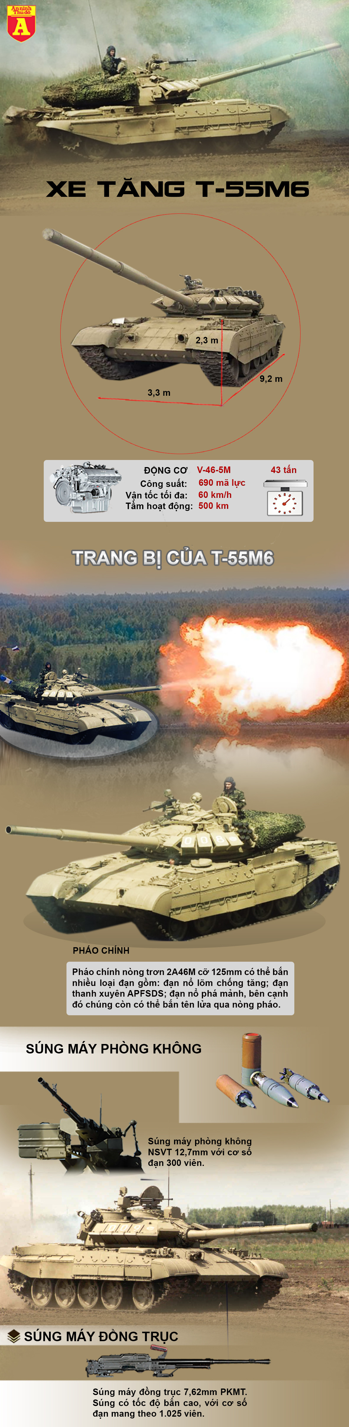 | Phiên bản mạnh nhất hiện nay chính là T-55M6 do Nga phát triển |