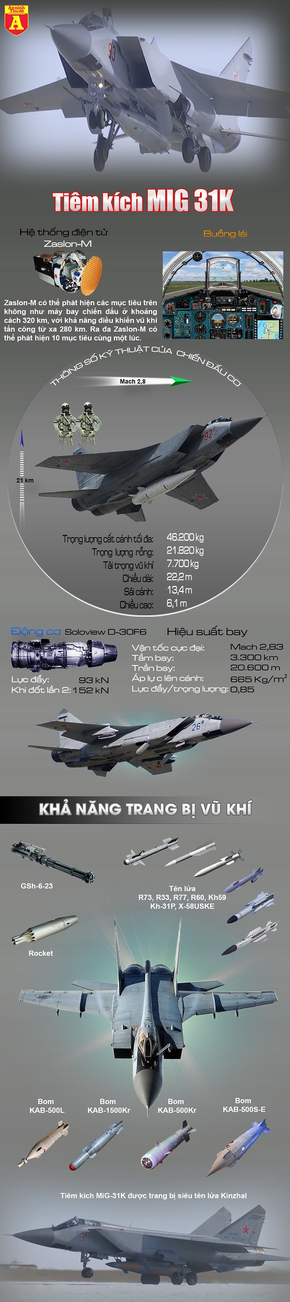 Trong khi đó tiêm kích MiG-31, có tên định danh của NATO là Foxhound, có chuyến bay thử đầu tiên vào năm 1975. Nó được tạo ra nhằm thay thế cho MiG-25. Có thể nói, bầu trời nước Nga đang được bảo vệ bởi loại máy bay "độc nhất", có thể đánh chặn bất kỳ mục tiêu nào, từ các tên lửa hành trình cho đến cả vệ tinh, trong mọi điều kiện thời tiết, cả ngày lẫn đêm và ở bất kỳ tốc độ nào. Đặc biệt MiG-31 mới được nâng cấp lên chuẩn K với sức mạnh từ siêu tên lửa hành trình siêu âm cực mạnh Kh-47.