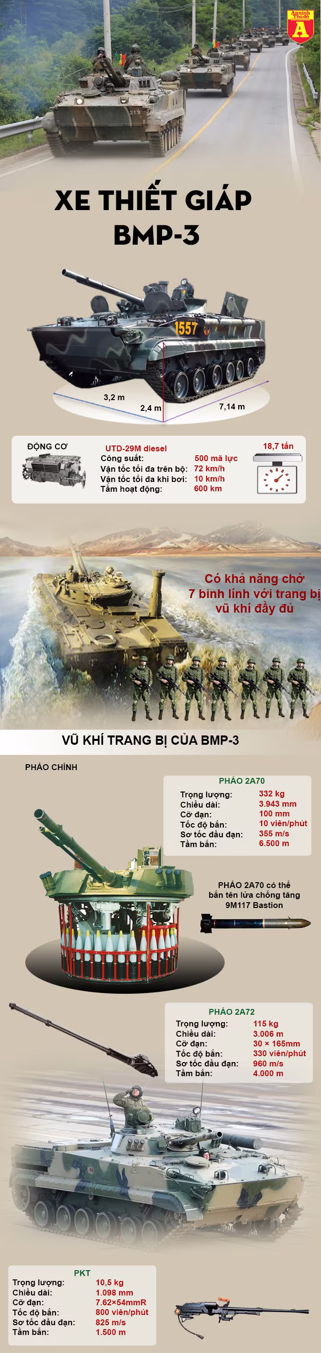 Ngoài xe tăng T-80 và máy bay Ka-28, Hàn Quốc còn nhận được từ Nga 70 chiếc BMP-3, gồm 33 chiếc chuyển giao trong giai đoạn 1996 - 1997 và thêm 37 chiếc khác chuyển giao trong năm 2005. Các xe bọc thép BMP-3 được đánh giá là một trong số các dòng xe chiến đấu bộ binh mạnh mẽ do có hỏa lực mạnh, cơ động tốt, chi phí khai thác thấp và bền bỉ trên chiến trường.
