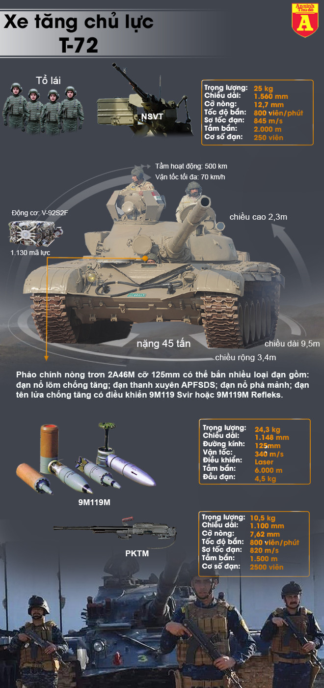 T-72 là xe tăng chiến đấu chủ lực của Liên Xô, được sản xuất vào năm 1971 và ra mắt vào năm 1977. Mặc dù có hình dạng rất giống T-64, T-72 thực ra được phát triển từ T-62 và có trang bị thêm những chi tiết kỹ thuật từ T-64. Mặc dù vậy, T-72 không đơn thuần là một mẫu cải tiến mà là một kiểu mới hoàn toàn và vượt trội so với người tiền nhiệm của mình.
