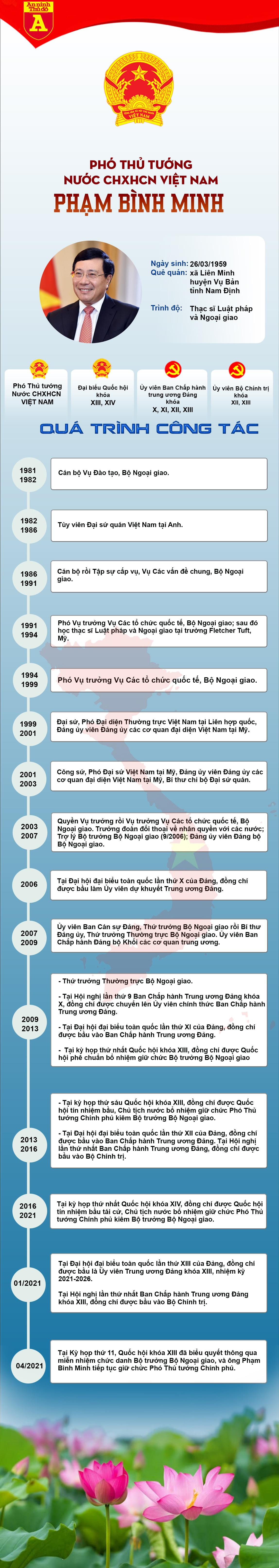 Trong danh sách do Thủ tướng Chính phủ Phạm Minh Chính trình ra Quốc hội để nghị phê chuẩn việc miễn nhiệm sáng ngày 7-4-2021, trong số các Phó Thủ tướng chỉ có ông Trịnh Đình Dũng được đề nghị phê chuẩn miễn nhiệm; trường hợp ông Phạm Bình Minh được đề nghị phê chuẩn miễn nhiệm chức Bộ trưởng Bộ Ngoại giao và tiếp tục giữ chức Phó Thủ tướng Chính phủ.