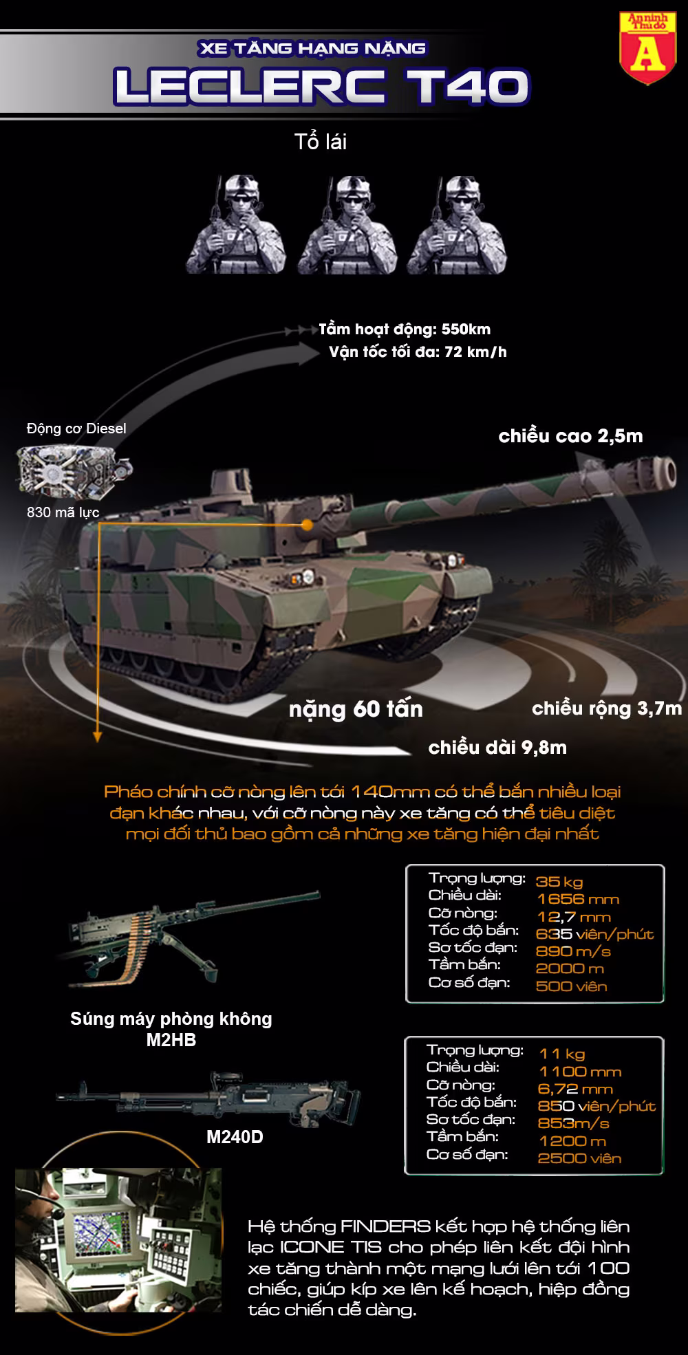 Tuy nhiên Pháp đã mạnh dạn phát triển và lắp đặt pháo "khủng" có cỡ nòng 140mm lên xe tăng hạng nặng AMX-56 Leclerc. Phiên bản này được đặt tên lửa Leclerc T-40 biệt danh Terminator (Kẻ hủy diệt). Với cấu hình mới, trọng lượng của xe tăng Pháp tăng lên 60 tấn với cơ số đạn 31 viên.