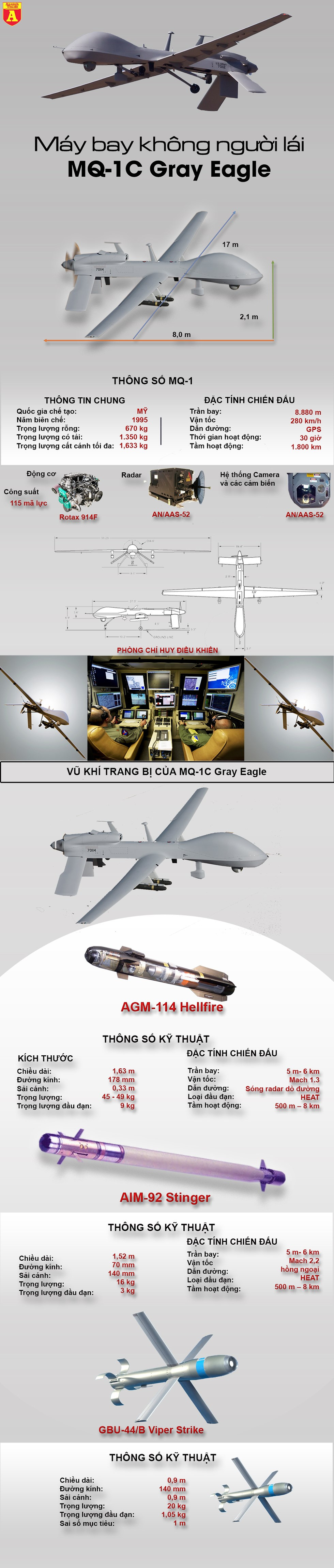 MQ-1C Gray Eagle là một máy bay trinh sát không người lái kiêm tấn công của không quân Mỹ. Với thời gian bay liên tục lên tới 30 giờ cùng khả năng mang theo các tên lửa đối không hoặc đối đất với tổng trọng lượng vũ khí lên tới 553kg, MQ-1C là cơn ác mộng trên không đối với lục quân đối phương.