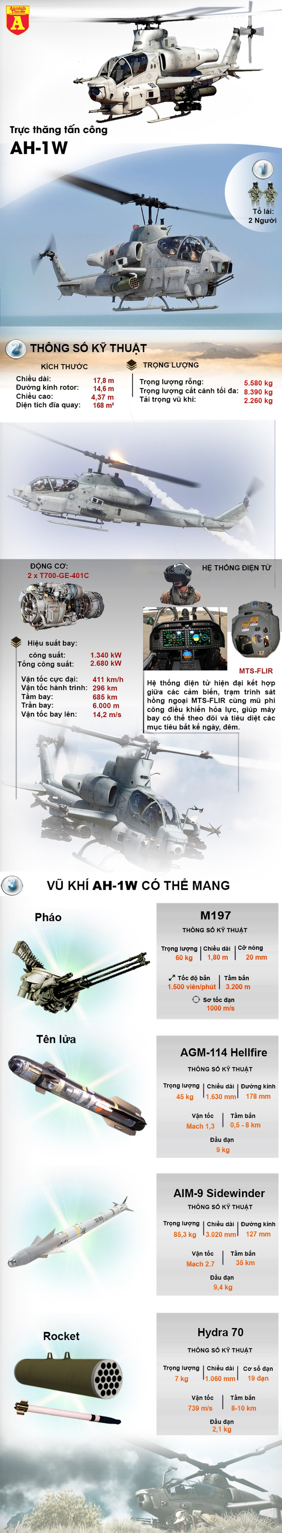 Dòng trực thăng AH-1W là thế hệ thứ hai của dòng trực thăng chiến đấu nổi tiếng AH-1 Cobra của Mỹ - từng tham chiến lần đầu tiên ở Việt Nam. Khác với thế hệ đầu, những chiếc AH-1W Super Cobra được trang bị 2 động cơ cho khả năng cơ động tốt hơn, cùng hệ thống điện tử tiên tiến hơn. Chúng có thể mang nhiều loại vũ khí khác nhau để tấn công mặt đất.