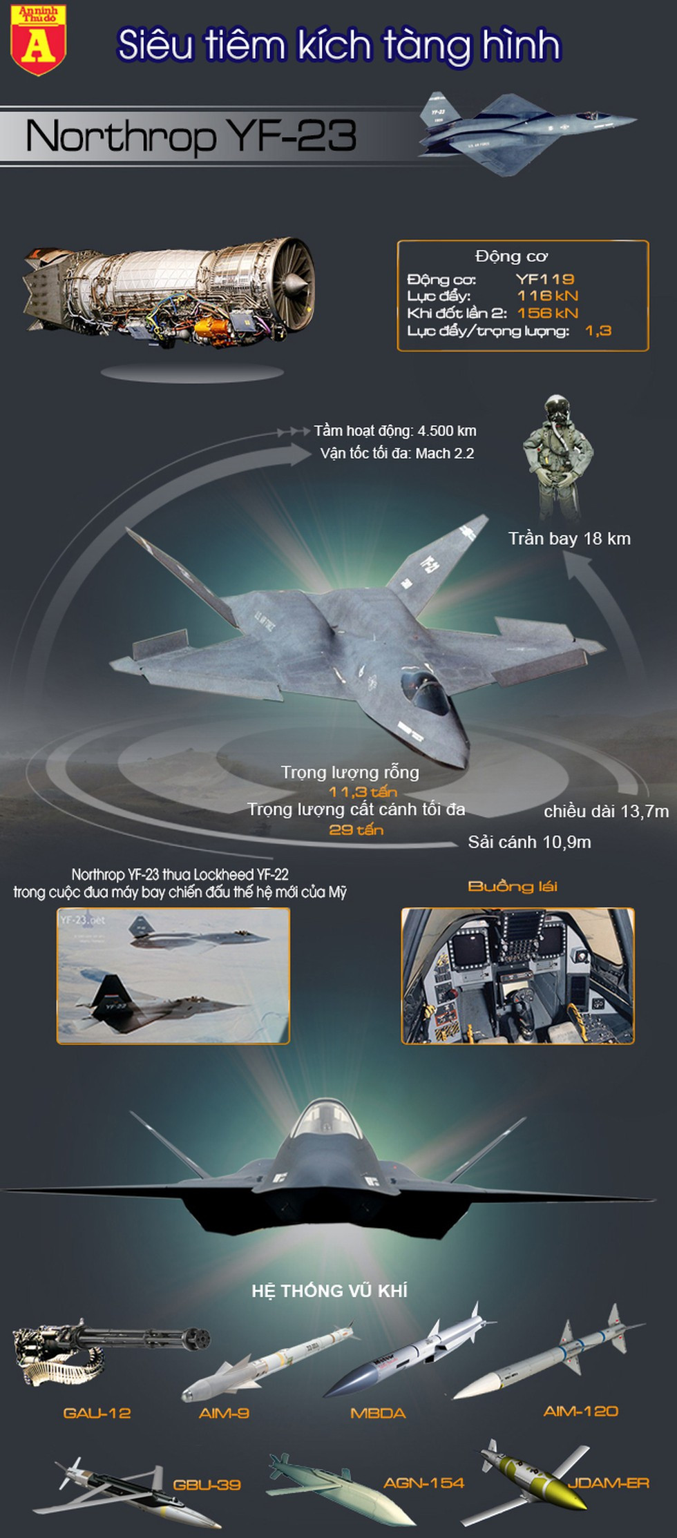 Northrop YF-23 là một trong những cái tên đình đám trong gia đình chiến đấu cơ thế hệ thứ 5 của Mỹ, tuy mang trong mình những tính năng đặc biệt để có thể sống sót cao trên chiến trường, tốc độ hành trình siêu âm, hoạt động bí mật, giảm sự phản xạ sóng radar, và giảm chi phí bảo dưỡng, tuy nhiên điều đó là chưa đủ để đánh bại đối thủ cạnh tranh YF-22 trong vai trò tiêm kích chủ lực trên không của Mỹ.