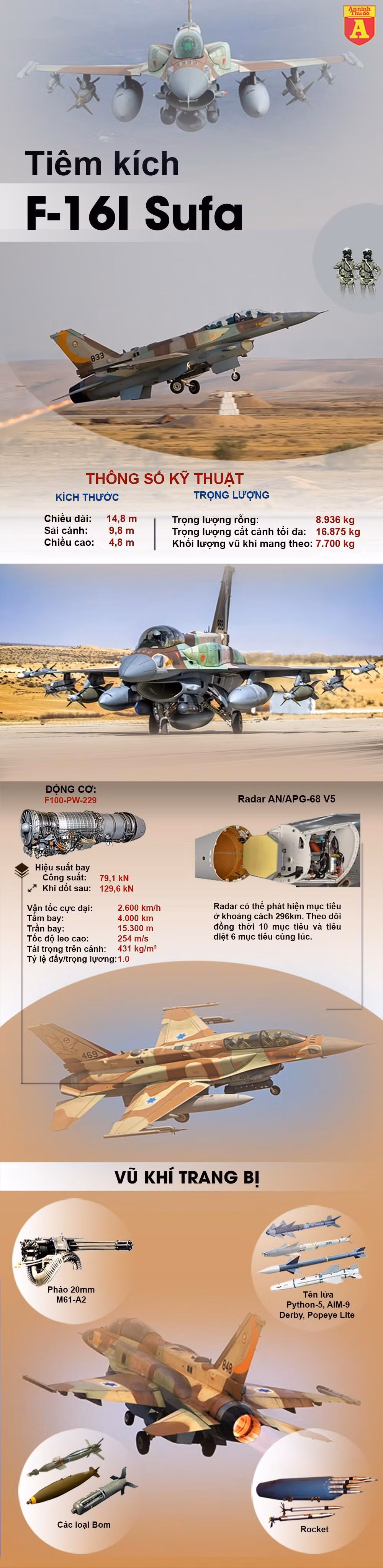 F-16I Sufa là phiên bản tiêm kích F-16 hiện đại nhất của Không quân Israel - đây vốn là phiên bản nâng cấp của mẫu F-16/CD Block 52. F-16I trang bị 50% hệ thống điện tử hàng không do Israel chế tạo, có khả năng triển khai tên lửa không đối không Python 5, bổ sung thêm 2 thùng nhiên liệu hòa nhập khí động học CFT tăng tầm bay.