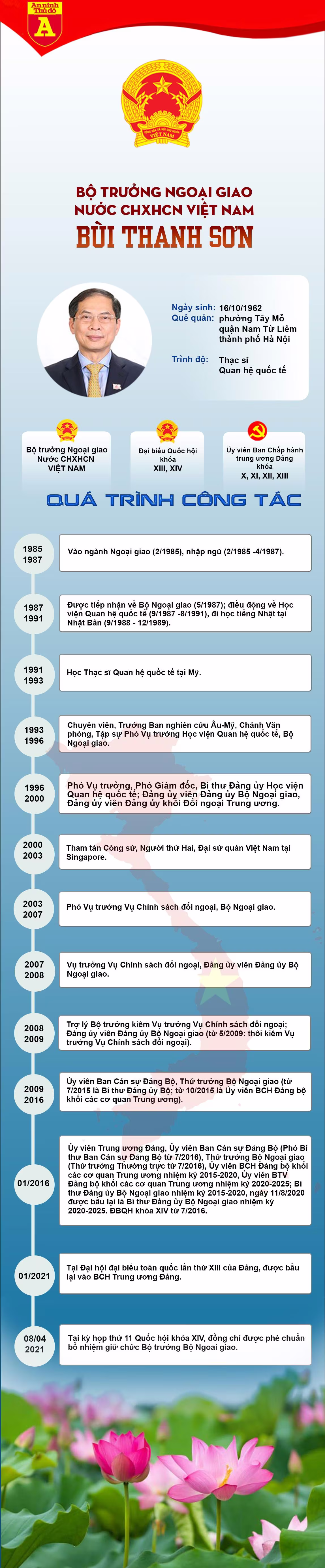 Ông Sơn 59 tuổi; cử nhân Ngoại giao, thạc sĩ Quan hệ quốc tế; quê Hà Nội. Sự nghiệp của ông Sơn gắn liền với ngành ngoại giao, từng làm Phó Vụ trưởng, Phó Giám đốc Học viện Quan hệ quốc tế; Tham tán Công sứ tại Đại sứ quán Việt Nam tại Singapore; Phó Vụ trưởng rồi Vụ trưởng, Vụ Chính sách Đối ngoại; Trợ lý Bộ trưởng Ngoại giao, Vụ trưởng Chính sách Đối ngoại, Thứ trưởng Ngoại giao.