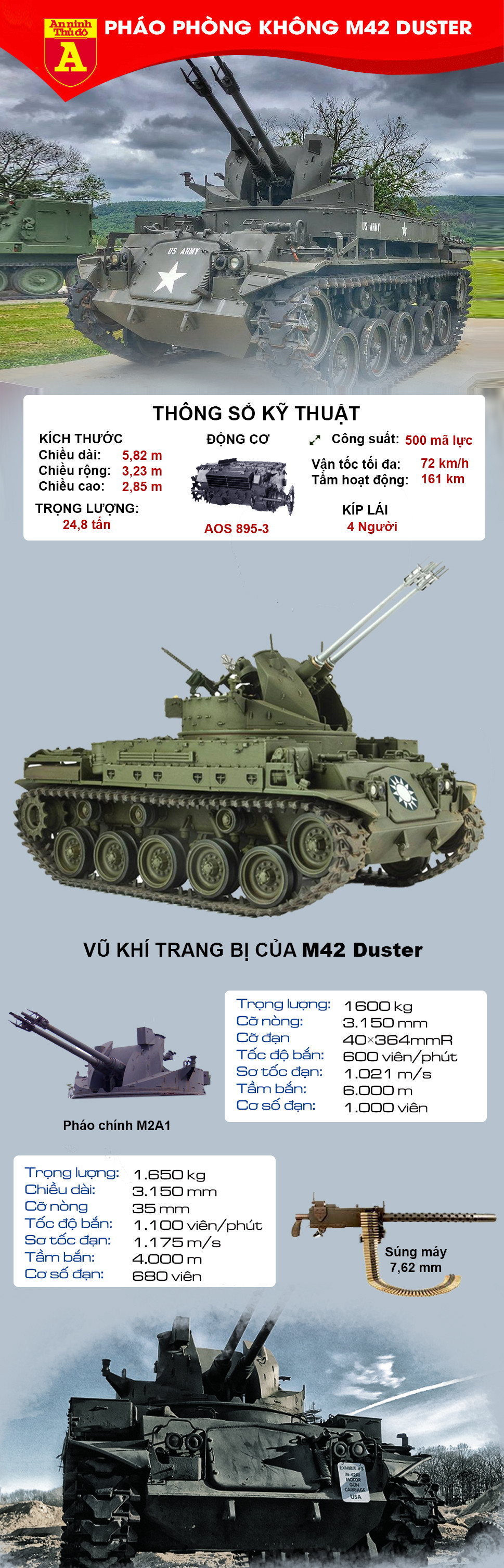 Hệ thống pháo phòng không tự hành M42 Duster được chế tạo dựa trên khung gầm xe tăng hạng nhẹ M41, chính thức sản xuất từ năm 1952 đến năm 1960 và phục vụ trong biên chế Lục quân Mỹ cho tới năm 1988. Ngoài Lục quân Mỹ, chúng còn được chuyển giao cho các đồng minh trong đó có Thổ Nhĩ Kỳ.