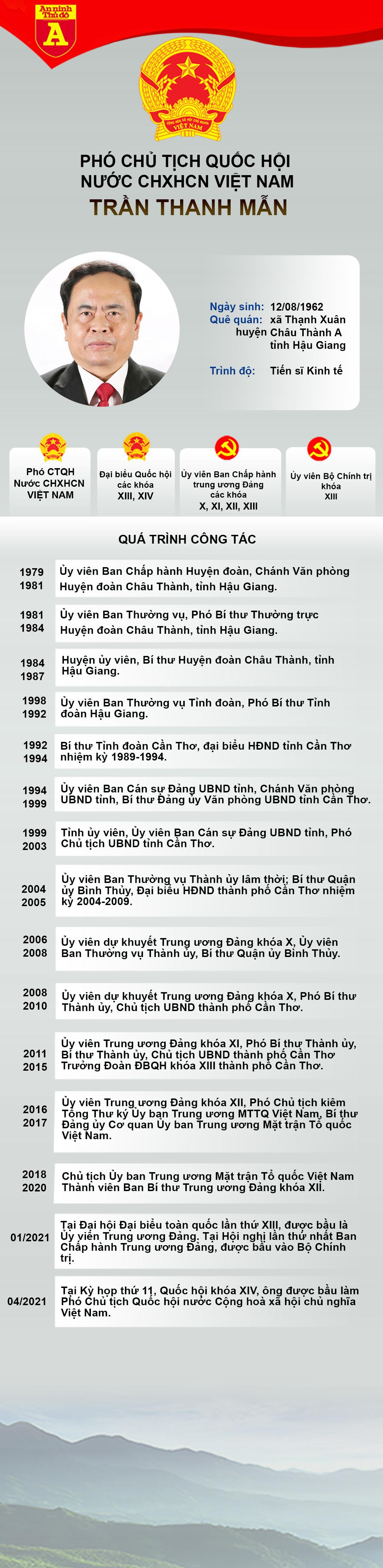 Ông Trần Thanh Mẫn 59 tuổi, Tiến sĩ kinh tế, quê ở Hậu Giang. Ông là Ủy viên Trung ương Đảng khóa X (dự khuyết), XI; XII, XIII; Bí thư Trung ương Đảng khóa XII; Ủy viên Bộ Chính trị khóa XIII; Đại biểu Quốc hội khóa XIII, XIV. Ông Mẫn là cán bộ trưởng thành ở Cần Thơ, lần lượt kinh qua nhiều chức vụ ở đây trước khi ra Hà Nội phục vụ.