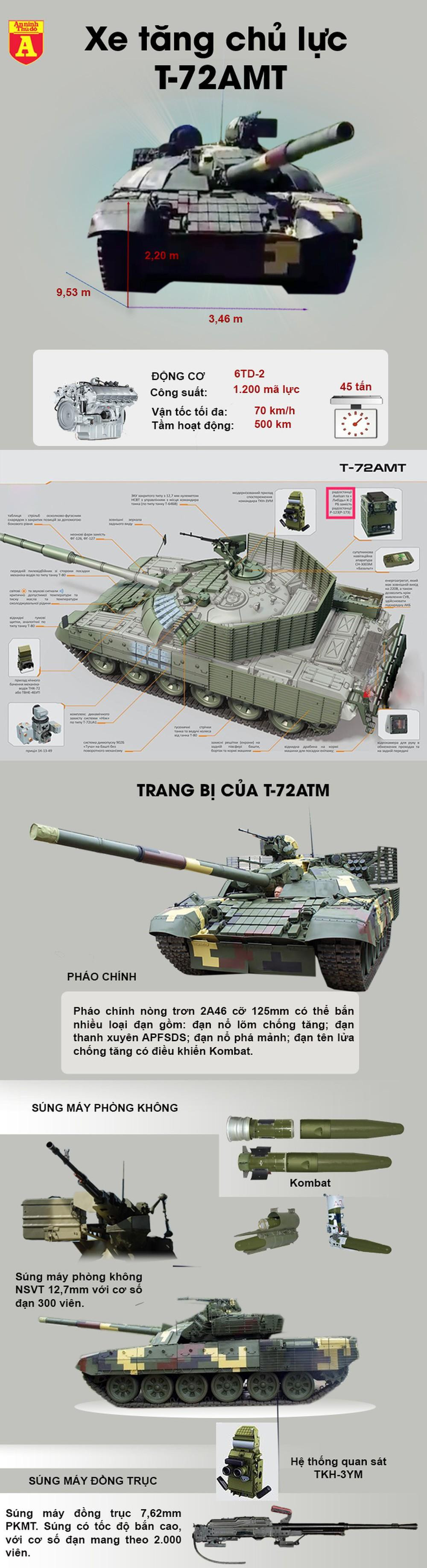 Rõ ràng về thông số chiến đấu, T-72AMT mạnh hơn phiên bản T-72B3 của Nga và có sức mạnh ngang ngửa với dòng T-90 của Nga. Với việc đưa vào tham chiến tại chiến trường miền Đông sẽ giúp quân đội chính phủ có lợi thế trước phe ly khai thân Nga.