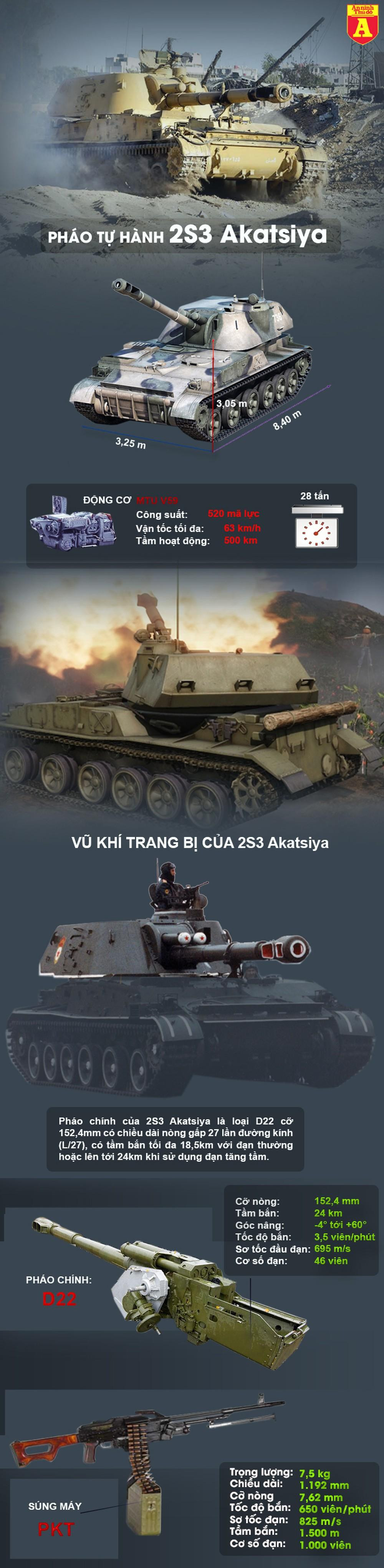 2S3 Akatiya là hệ thống pháo tự hành cỡ 152 mm do Liên Xô nghiên cứu chế tạo từ năm 1968 nhằm đối phó với loại M109 Paladin của Mỹ. Kết cấu của 2S3 gồm khung xe dựa trên cơ sở xe mang phóng tự hành 2P24 của tổ hợp tên lửa đất đối không SA-4 Krug nhưng đã được rút bỏ một hàng bánh chịu lực. Trong trường hợp hạ nòng trực xạ, đạn HEAT-FS 152 mm của pháo tự hành 2S3 có thể xuyên qua 250 mm thép đồng nhất, từ cự ly 3 km.