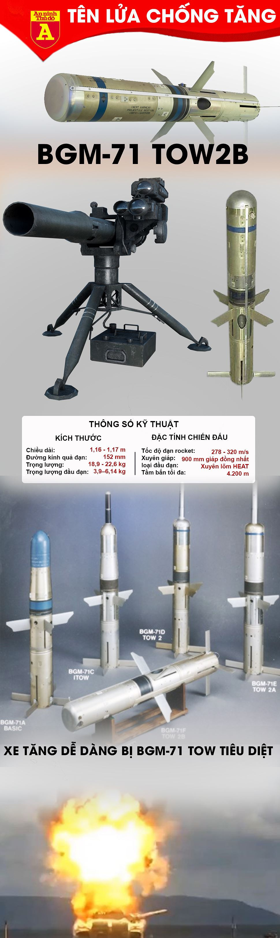 Tên lửa chống tăng TOW vốn ra đời từ thập niên 1970. TOW-2B là phiên bản mới nhất với nhiều tính năng vượt trội. Đây được coi là loại tên lửa diệt tăng đứng thứ 2 về mức độ nguy hiểm của Mỹ, chỉ sau tên lửa Javelin. Tại chiến trường Syria, tên lửa chống tăng TOW đã chứng minh sức mạnh của mình khi hủy diệt được cả xe tăng Leopard 2A4 của Thổ Nhĩ Kỳ và tăng T-90A của quân đội Syria.