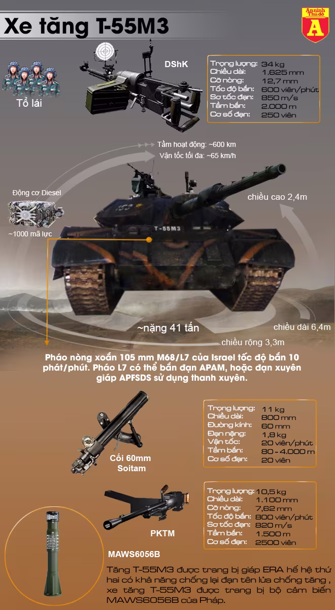 Cùng xem thông số chi tiết xe tăng T-55M3 qua infographic.