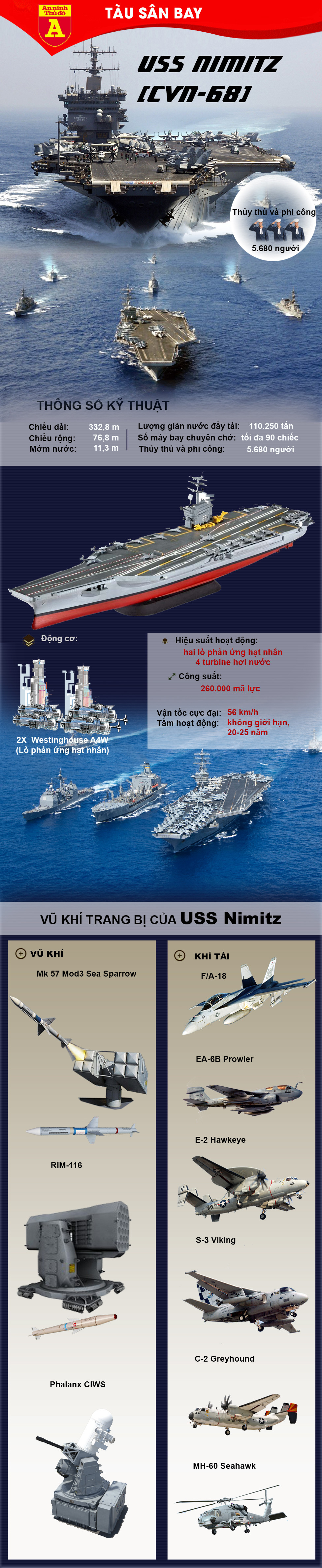 | Siêu tàu sân bay USS Nimitz của Mỹ. |