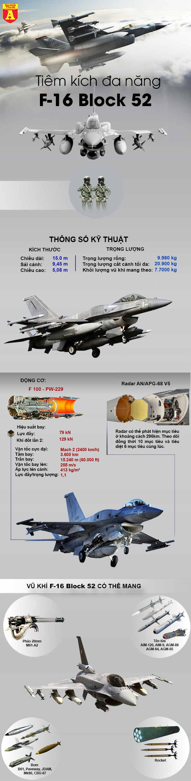 Hiện nay đóng vai trò xương sống trong không quân Iraq chính là các chiến đấu cơ F-16 Block 52 mua từ Mỹ. Nước này đã ký hợp đồng mua tổng cộng 36 chiếc F-16 từ Mỹ, lô đầu tiên đã bàn giao vào 9/2014, dự kiến lô thứ hai sẽ bàn giao vào năm 2018. Cùng xem thông số loại máy bay vừa gây thiệt hại kinh hoàng cho IS qua infographic dưới đây.