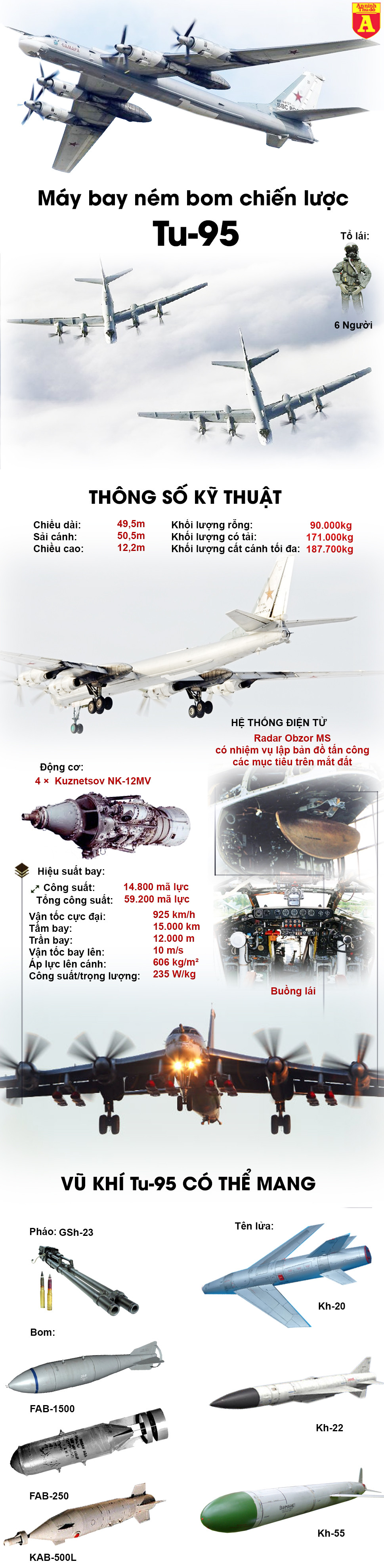 | Máy bay ném bom chiến lược Tu-95MS của không quân Nga |