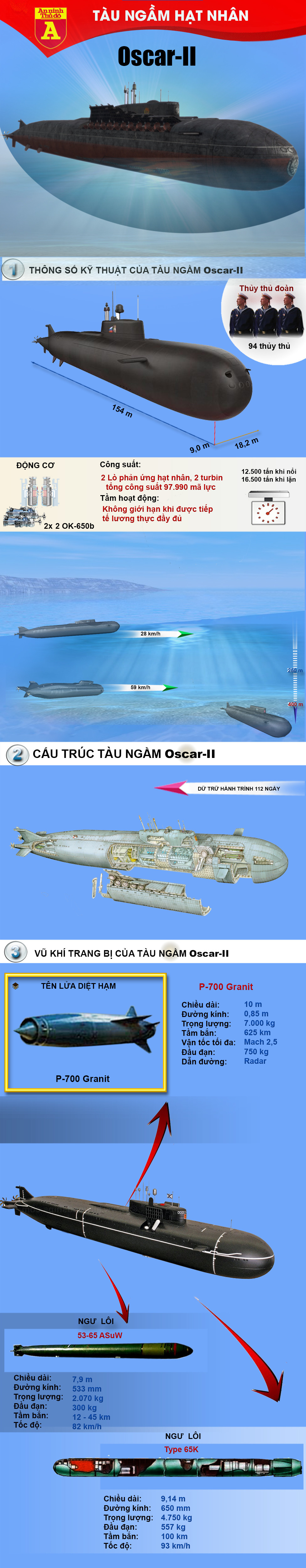 Oscar II là loại tàu ngầm vốn được thiết kế như những cỗ máy khổng lồ chuyên phóng tên lửa này để tấn công các biên đội tàu sân bay của Mỹ và các công trình ven biển của đối phương.