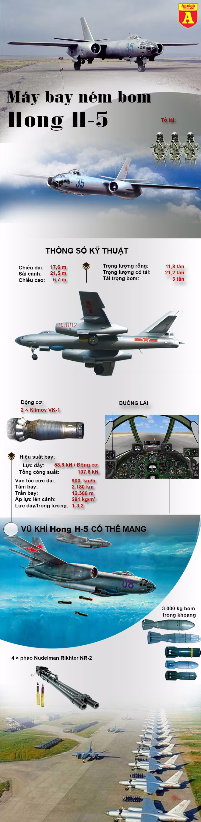 Một khi xung đột xảy ra lực lượng này vẫn có thể gây ra những thiệt hại nhất định cho Hàn Quốc. Cùng xem thông số chi tiết loại máy bay ném bom này qua infographic dưới đây.