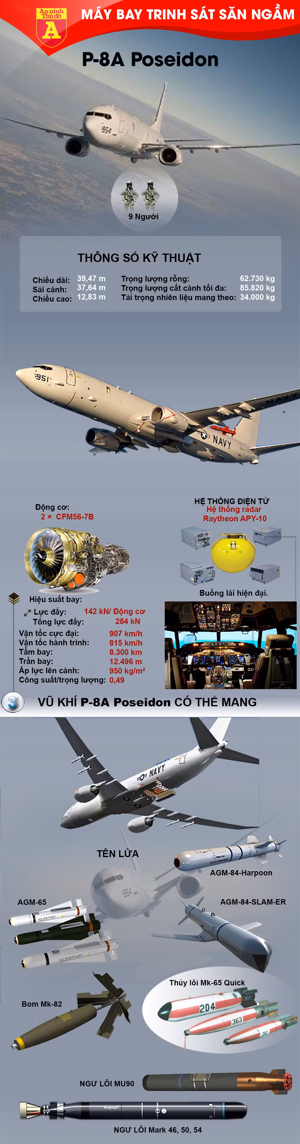 Với kho vũ khí này, P-8A sẽ là nỗi ác mộng cho hải quân đối phương, đặc biệt với lực lượng tàu ngầm.