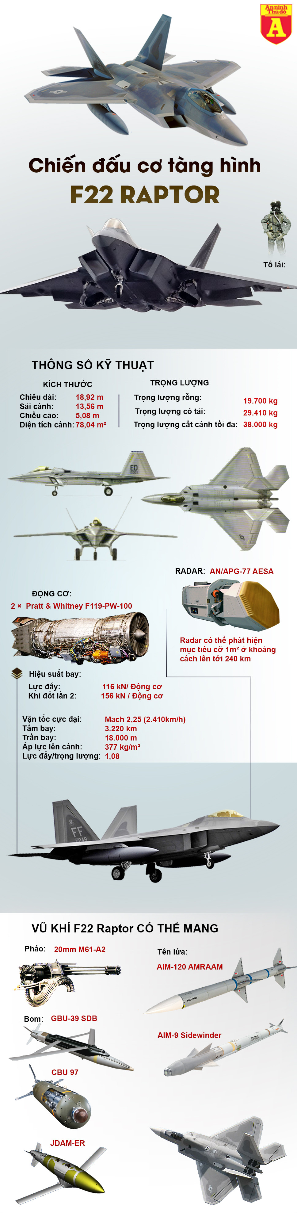 F-22 Raptor vốn là chiến đấu cơ tàng hình thế hệ thứ 5, việc các hệ thống phòng không phát hiện và bắn hạ nó được coi là nhiệm vụ cực kỳ khó khăn nếu không muốn nói là bất khả thi kể cả hệ thống S-400. Hiện tại Mỹ đang có 187 chiếc F-22 Raptor, và chúng được coi là đỉnh cao công nghệ của khoa học kỹ thuật Mỹ.