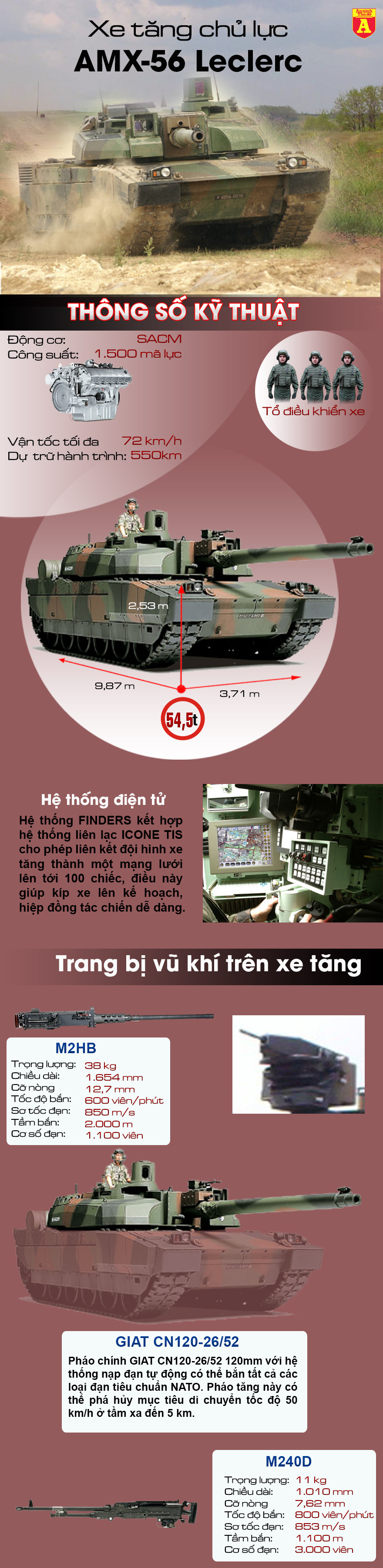 AMX-56 Leclerc là mẫu xe chiến đấu chủ lực hiện đại nhất Quân đội Pháp do nhà sản xuất GIAT Industries (nay là Nexter) phát triển và chế tạo từ năm 1990-2008. Xe tăng Leclerc tích hợp rất nhiều công nghệ điện tử và phòng vệ tối tân, trong đó có hệ thống chiến đấu tối tân FINDERS kết hợp hệ thống liên lạc ICONE TIS, cho phép liên kết đội hình xe tăng thành một mạng lưới lên tới 100 chiếc, giúp kíp xe lên kế hoạch, hiệp đồng tác chiến dễ dàng. Đây là khả năng mà không có bất kỳ một loại xe tăng nào khác trên thế giới làm được.