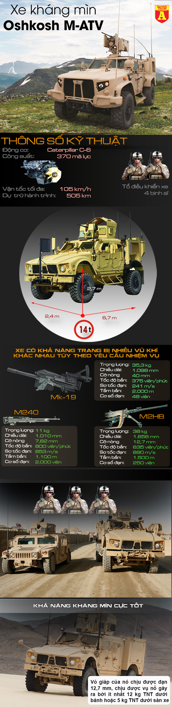 Xe bọc thép Oshkosh M-ATV được phát triển bởi hãng Oshkosh (Wisconsin - Mỹ), được thiết kế để cung cấp mức độ bảo vệ tốt hơn nhưng vẫn gia tăng được khả năng cơ động.