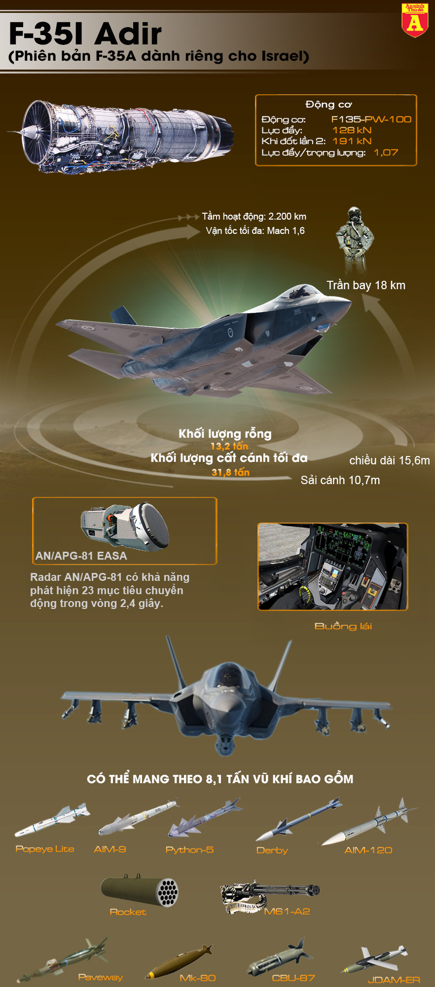 Hiểu được điều này, Israel đã tinh chỉnh lại thông số vũ khí, cũng như lắp đặt thêm các hệ thống điện tử do chính nước này phát triển, vì thế năng lực của các chiến đấu cơ F-35I ở một số tính năng nhất định còn mạnh hơn cả phiên bản gốc.