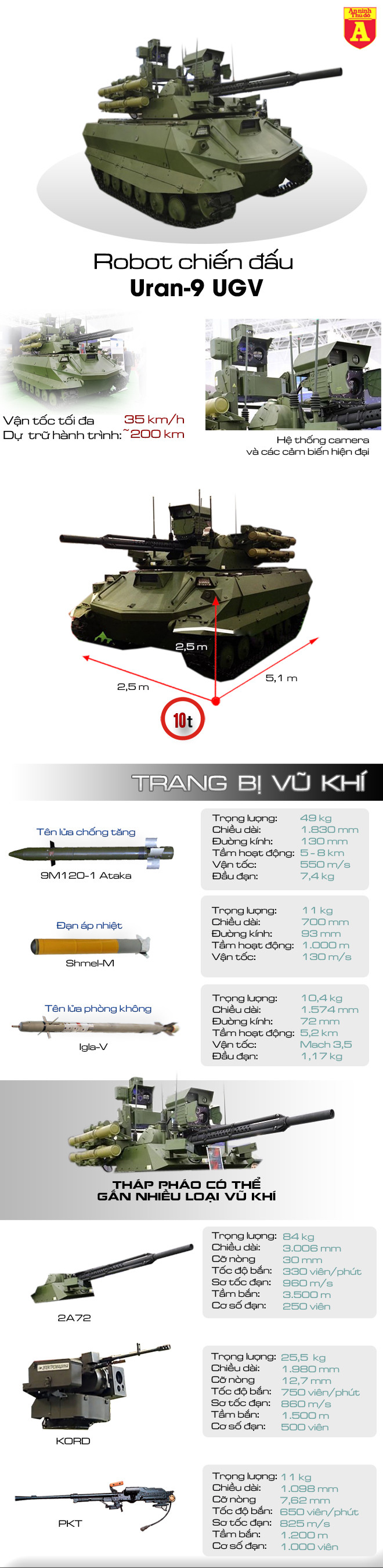 Uran-9 thuộc loại phương tiện chiến đấu mặt đất không người lái (UGV) do Công ty quốc phòng 766, thuộc tập đoàn Rostec sản xuất và ra mắt tháng 1-2016. Uran-9 được thiết kế cho nhiệm vụ trinh sát, chiến đấu, yểm trợ hỏa lực và chống khủng bố. Nó sẽ thay thế cho binh lính trong các nhiệm vụ có nguy cơ cao.