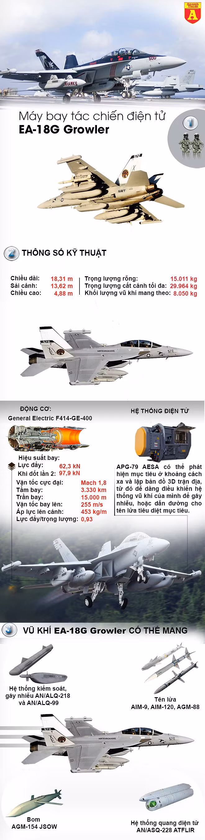 EA-18G Growler do hãng Boeing chế tạo, là máy bay tác chiến điện tử chủ lực của Mỹ hiện nay. Khả năng tác chiến điện tử của EA-18G Growler rất mạnh và đa dạng, vừa triệt phá hoạt động các đài radar của đối phương, sau đó có thể tiêu diệt các đài radar này bằng tên lửa. Thực chiến tại chiến trường Iraq và Lybia cho thấy, sức mạnh của những chiếc EA-18G còn hơn cả sự mong đợi khi chỉ cần một vài chiếc là có thể vô hiệu hóa toàn bộ hệ thống điện tử của đối phương, thậm chí nó còn phá được cả sóng điện thoại khiến việc liên lạc hoàn toàn tê liệt.