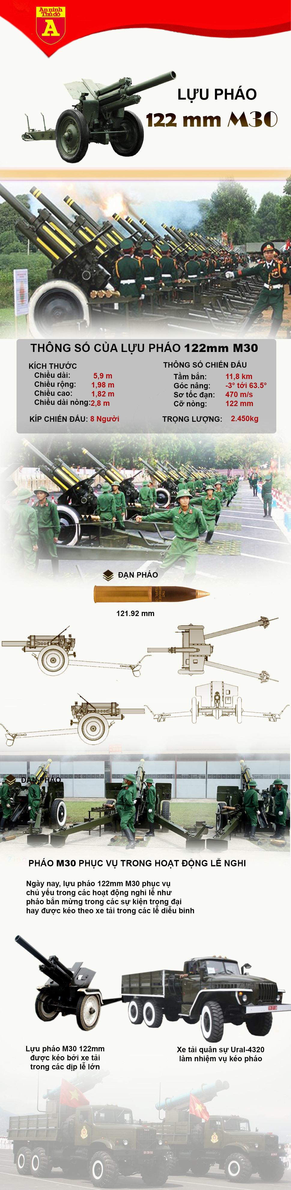 Ngày nay, lựu pháo M30 122mm chủ yếu được phục vụ trong các lễ kỷ niệm lớn của đất nước, như lần bắn loạt đạn chào mừng đại lễ 1.000 năm Thăng Long-Hà Nội vào năm 2010 cũng như các dịp lễ lớn khác.