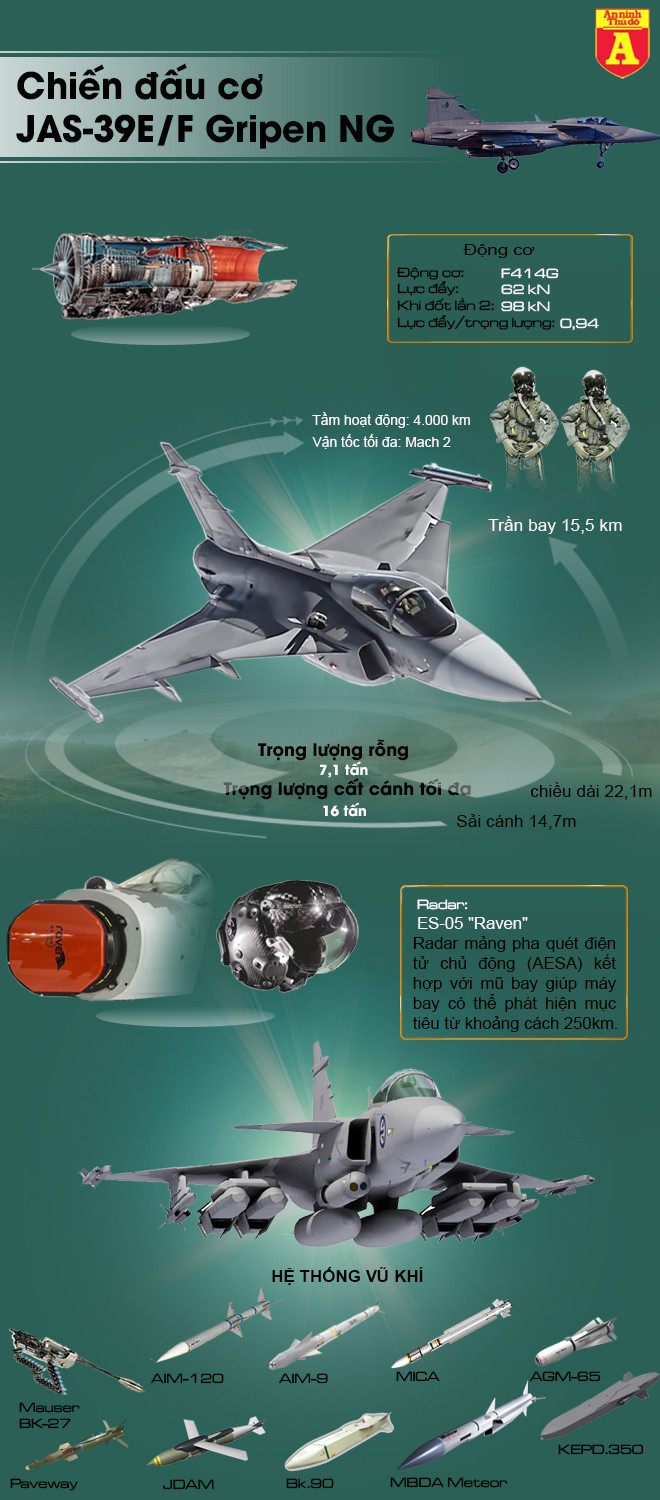 Quân đội Thụy Điển vừa cho ra mắt tiêm kích JAS-39 Gripen E/F với sự lột xác hoàn toàn về tính năng chiến đấu so với các phiên bản cũ, thậm chí một số tính năng còn được đánh giá cao hơn cả Su-35, loại tiêm kích hạng nặng của Nga.