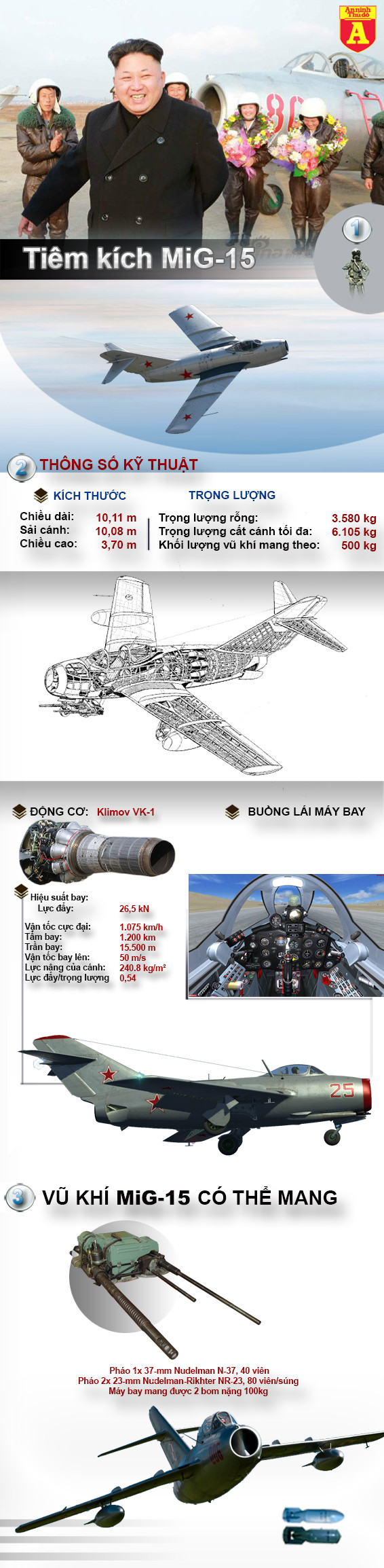 Trong khuôn khổ “cuộc thi chiến đấu trên không”, mà theo như tướng lĩnh cấp cao Triều Tiên thì đây là màn tập dượt để đánh chìm tàu sân bay Mỹ. Trong những loại vũ khí dùng vào mục đích này khiến người ta bất ngờ nhất là việc họ quyết định đưa tiêm kích siêu cổ MiG-15, loại máy bay đã có tuổi đời trên 70 năm để làm phương án đánh đắm tàu sân bay Mỹ.