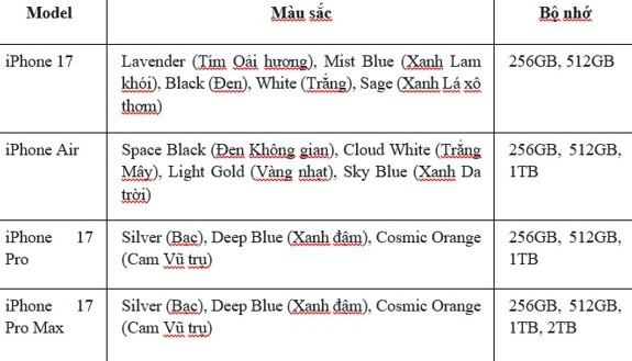 Thế hệ iPhone mới nhất ra mắt với dải màu sắc độc đáo và các tùy chọn bộ nhớ đa dạng, đáp ứng mọi cá tính và nhu cầu lưu trữ của người dùng.