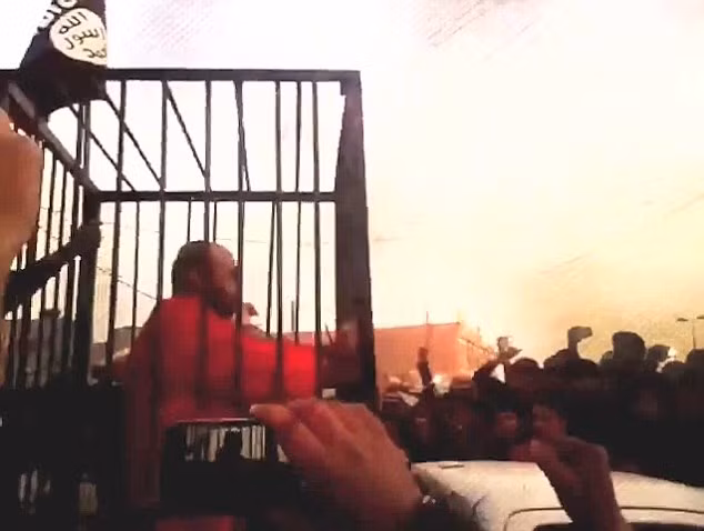 Đoạn video dài 4 phút được IS tung lên mạng truyền thông xã hội, quay cảnh diễu hành của “những chiếc lồng sắt” đang đi từ từ giữa đám đông dân chúng la hét. Mỗi chiếc lồng được đặt trên chiếc xe bán tải, có một phần tử cực đoan cầm súng AK-47 làm nhiệm vụ canh giữ và phất cờ của IS.