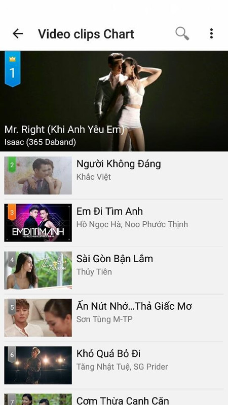 "Mr.Right" xếp hạng nhất trong BXH MV được yêu thích nhất của trang nhạc trực tuyến Zing