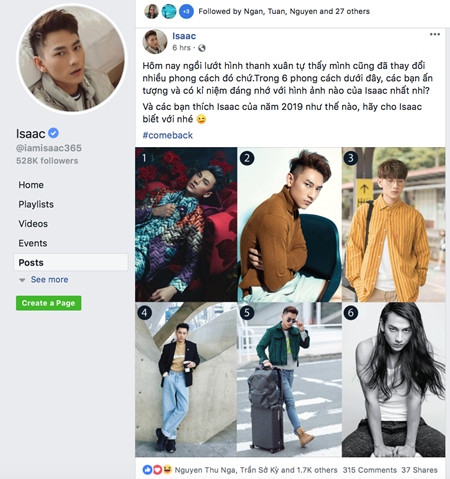 Những hình ảnh anh chia sẻ trên fanpage được cộng đồng mạng yêu thích và bình chọn. Có thể thấy từ 6 khoảnh khắc “đắt giá” trong hành trình trở thành một ngôi sao, giọng ca Mr. Right đã chứng minh được khả năng biến hoá đủ phong cách, từ một quý ông lạnh lùng cho đến style thư sinh lãng tử, thậm chí có thời điểm Isaac làm bấn loạn vì chất nổi loạn được bùng phát. Dẫu thế, nam ca sĩ Isaac luôn toát ra sự lịch lãm, chững chạc - một trong những hình ảnh, phong cách mà giải trí Việt cần.