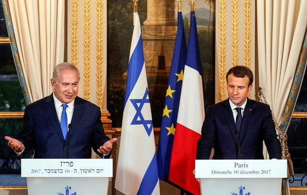 Thủ tướng Israel Benjamin Netanyahu (trái) và Tổng thống Pháp Emmanuel Macron họp báo sau cuộc gặp tại điện Elysee ở Paris vào tháng 12/2017