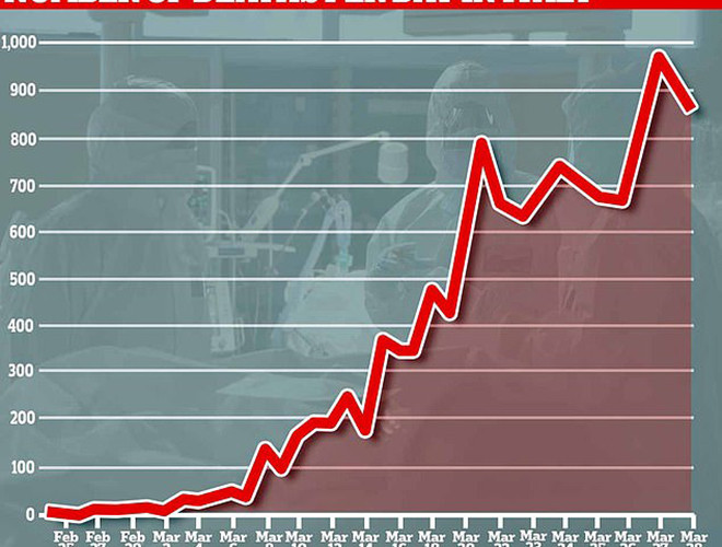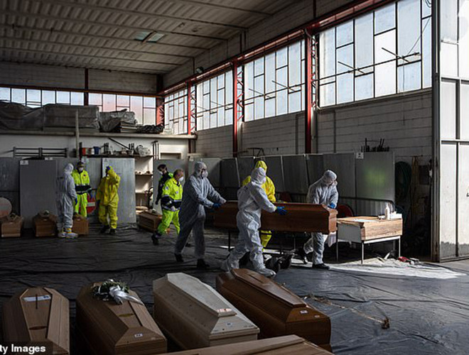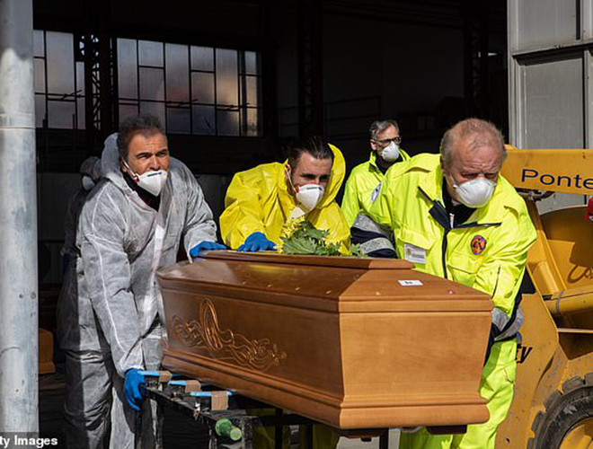 ANTD.VN - Cuối tuần này, số ca tử vong vì Covid-19 ở Italy tăng gần 1.000 ca mỗi ngày, tổng số đã lên tới 10.023 ca, hiện cao gấp 3 lần so với Trung Quốc. Trong bối cảnh các quan tài để đầy các nhà thờ và quân đội phải di chuyển người chết ra khỏi khu vực bị ảnh hưởng nặng nhất, Italy còn đối mặt với mối đe dọa về sự sụp đổ kinh tế sau khi là quốc gia châu Âu đầu tiên đóng cửa gần như tất cả các doanh nghiệp của mình vào ngày 12-3.