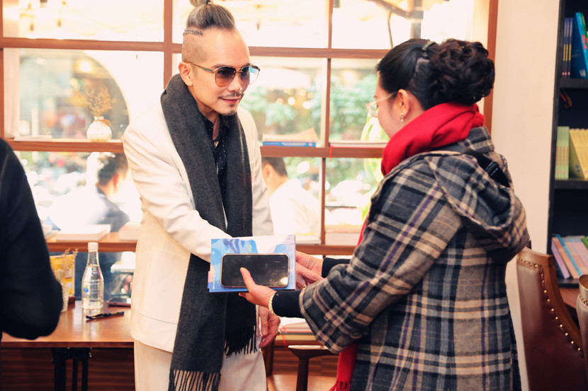 | Ca nhạc sĩ Jimmii Nguyễn ký tặng sách cho bạn đọc |