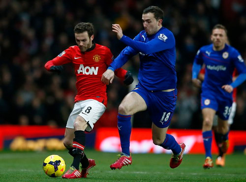 Có được bàn tháng dẫn trước, các cầu thủ đội chủ nhà thi đấu thanh thoát và tạo ra vô số các tình huống nguy hiểm và Juan Mata vẫn là ngòi nổ trong những đợt tấn công của MU. Sau khi để đội chủ nhà lấn lướt ở nửa hiệp đấu đầu tiên, đội khách Cardiff bắt đầu lấy lại thế trận và tạo ra không ít khó khăn cho hàng thủ MU. Tuy nhiên, không có bàn thắng nào được ghi thêm khi kết thúc 45 phút thi đấu đầu tiên.